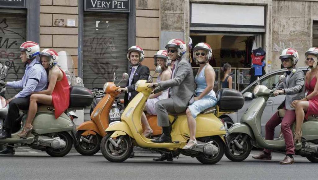 There is a downside to everything; and the downside of this extraordinary experience involves costs, organisational time to find the required number of Vespas and… the weather that is always unpredictable. Despite this, we invite you to now imagine that you are involved in this unforgettable experience.